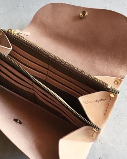 Damasquina(ダマスキーナ)は、厳選した良質の天然素材や質の高い金属を融合させ、独自の感性を活かしたオリジナリティー溢れる製品を作り続けているブランド。優れた技術を持つ職人の手により、日本製にこだわって仕上げられています。飽きのこないシンプルなデザイン、使い込むほどにさらに味わい深さが増す、上質のレザーが魅力の品々です。
