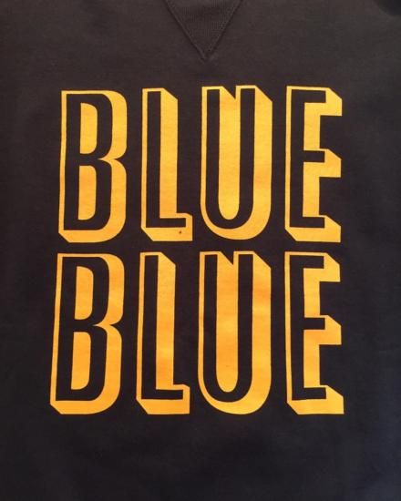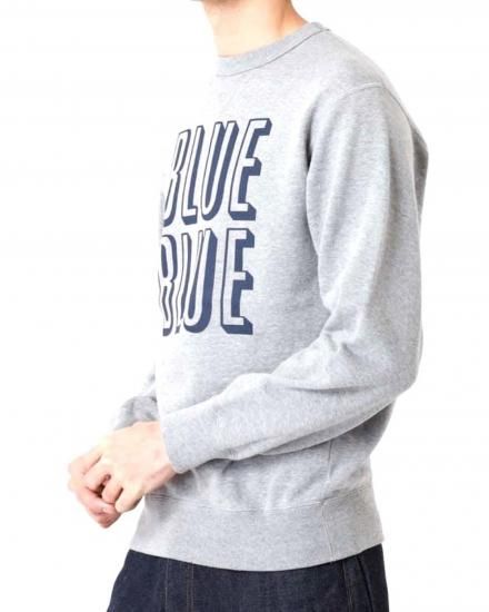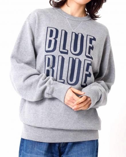 ヨーロッパのサインペインティングのフォントをイメージした、存在感のあるプリントのスウェットです。生地は1970年代初頭の希少なアズマ編機を使用した裏毛のスウェット生地です。現代の編み機に比べゆっくりと時間をかけて編み込んだ生地は、特有の膨らみと柔らかさがあります。デイリーに着るスウェットにぴったりの心地良い素材です。1960年代のヨーロッパのサインペインティングのフォントをモチーフに「BLUE BLUE」のロゴをデザインしました。