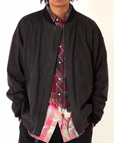 HIGH! STANDARD別注のヴィーガンスエードで仕立てたジップブルゾンです。洗濯で丸洗いが可能な、とろみのある非常に柔らかい素材を使用しています。天候に左右される必要がなく、気軽にご着用いただけます。製品にバイオウォッシュを施しアタリ感を出すことで、ステッチがより際立つ仕上がりとなっています。シンプルなデザインですが、ステッチワークの表情が印象的な一着です。