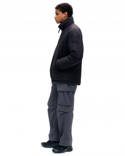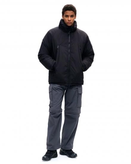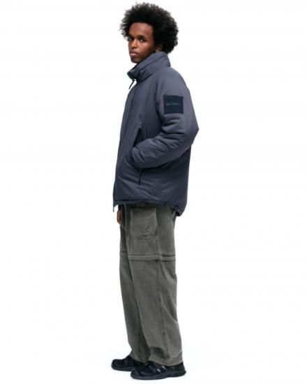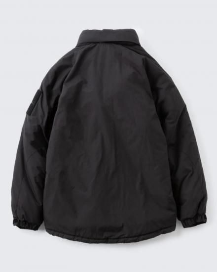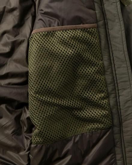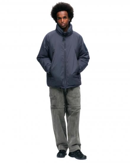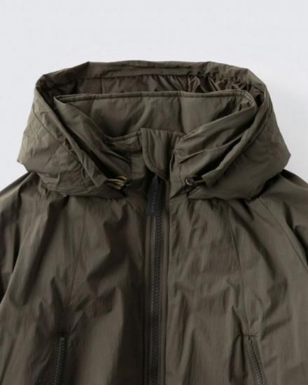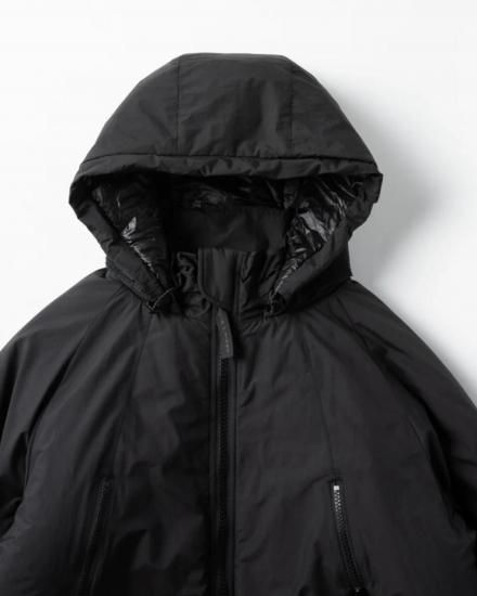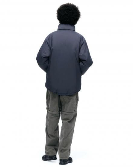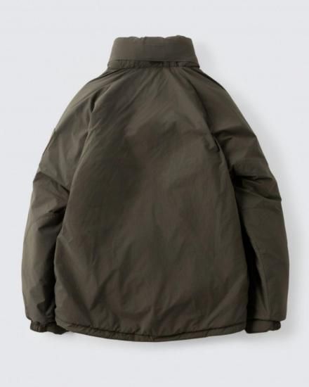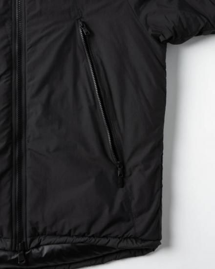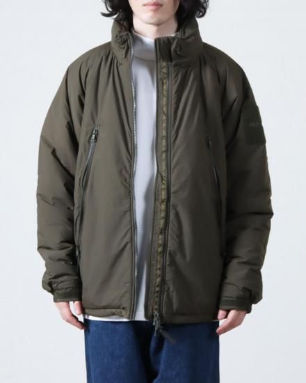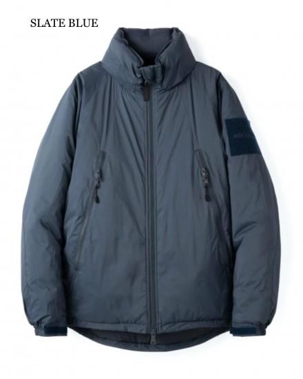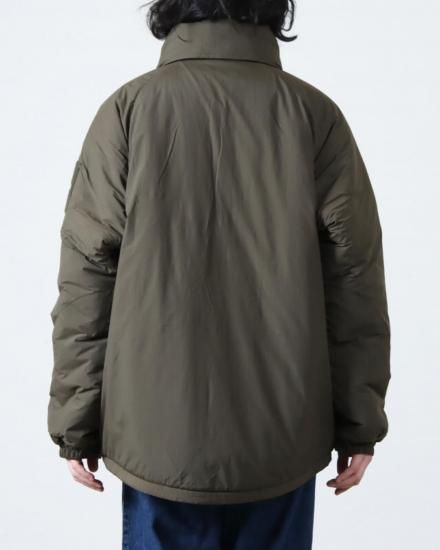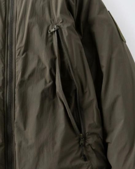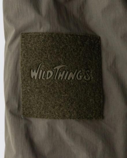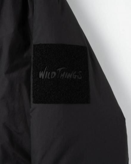 ECWCS LEVEL7のHAPPY SUITSを街着に落とし込んだWILD THINGS定番のハッピージャケット。・表地は撥水ナイロン、中綿はプリマロフトシルバーインサレーション200g /m²を使用。・当アイテムのアイコンである左袖のロゴ型押しのベルクロワッペン。・中綿をふんだんに使用したボリューム感が特徴。