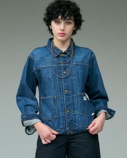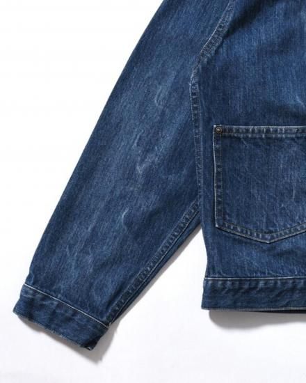 ヘラクレスのアーカイブにはないデニムジャケットをイメージしたアイテム。当時流行していたデニムジャケットをベースにバランスよくディティールを削ぎ落し、抜け感のあるシンプルな雰囲気に仕上げています。ポケットの角部分はあえてゆるめのカーブ状にステッチを入れており、大量生産していた時代のラフな雰囲気を国産ならではの技術で忠実に表現。ステッチ裏、カン止めには、グリーンの糸を使用しており、当時見えない箇所には工場の残糸を使用していたようなストーリーをイメージ。背中の腰部分には、ヴィンテージ感のあるシンチバックを使用しています。シルエットは、当時のデニムジャケットをベースに、身幅を広く、着丈を短く現代的なボックスタイプにアレンジしています。肉感は柔らかい風合いで身体に馴染みやすい13オンスのデニムを採用。ジャケット使いとしてはもちろん、ジャストサイズでアウターの中に重ねたスタイルもおすすめです。