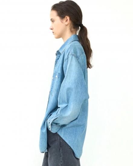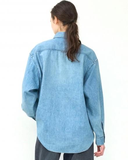 エコなライトデニムを使用したオーバーシャツ。従来のインディゴ染めよりも染料の廃棄を大幅に削減し、洗浄水の再利用により使用水を減らし環境に配慮した次世代デニムを使用しています。ナチュラルなユーズド感のある爽やかなカラーのバランスがポイントで、柔らかく肌に馴染むような風合いが着心地のよい一着。ベーシックでありながらも、程よいゆとりが女性らしさを感じさせるシルエットです。