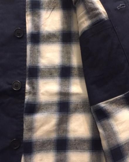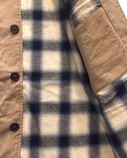 フェード感のあるソフトなコットンドリル素材を使った、ハンティングジャケットです。柔らかなコットンのツイル生地で綿100%ですが、ナチュラルなストレッチ性があります。洗いを繰り返すことで生まれるムラ感を生地にプリントすることで表現した新しいアプローチの素材。裏地には柔らかな肌触りの良いコットンフランネルを使用、袖裏は発色が良く、滑りの良いポリエステルを採用しています。レギュラーフィットのシルエット。程よいゆとり感でインナーダウンやスウェットなどの重ね着がしやすく、重ね着で秋口から春先まで長い期間での使用が可能な汎用性の高さが魅力です。使い勝手よく配置されたポケットや手触りの良いネル素材を使用したハンドウォームポケットなど随所に細かい配慮あるデザインで、襟や、袖口裏のコーデュロイも良いアクセントになっています。